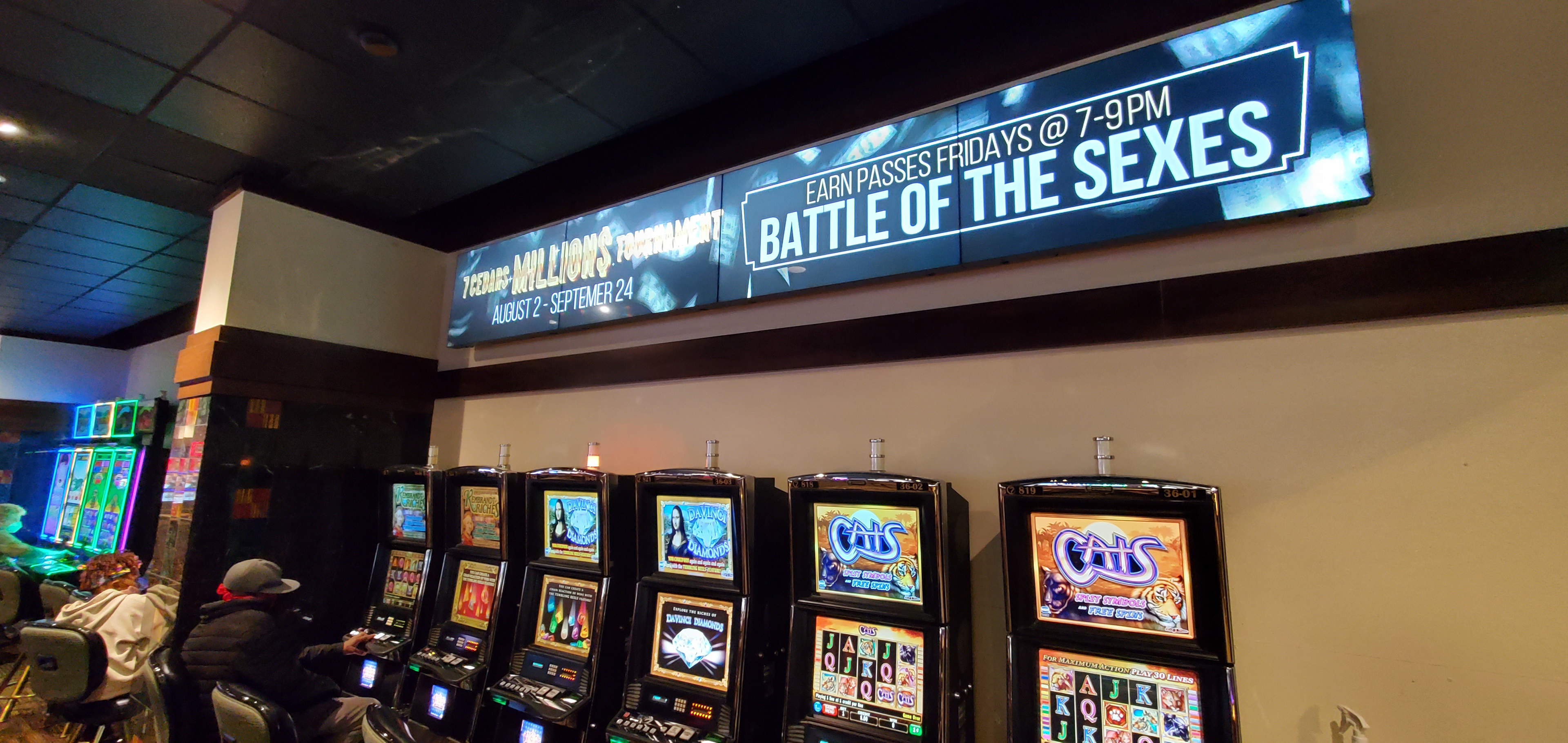For the casino, getting a message out to customers on property as often and in as many places as they can is pretty important to the Marketing effort. One of the more under-utilized spaces were the ribbon board screens that ran video content above the bars and pit areas around the whole casino. My job was to take our existing and future digital content, static landscape ads, and bring life to them through motion graphics so they could be broadcast on those screens and catch a player's attention.